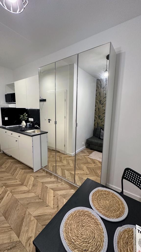 Fully furnished and equipped studio apartment located in Bukietowa 12 – just a 5-minute walk to Metro Wierzbno or Racławicka station.