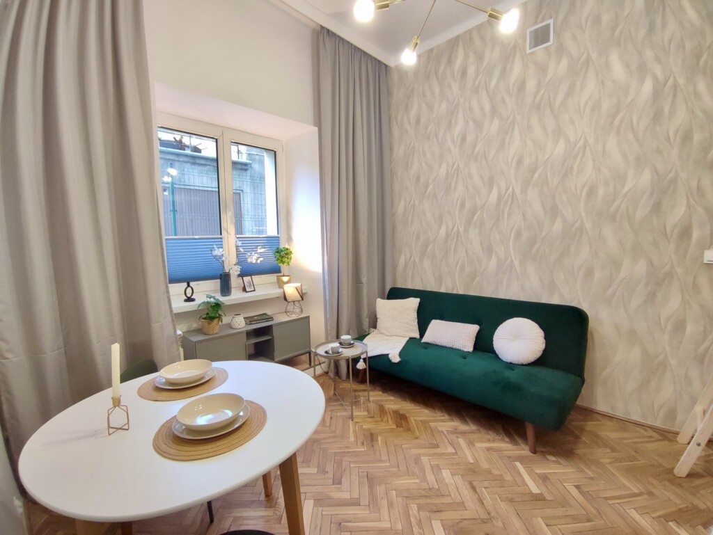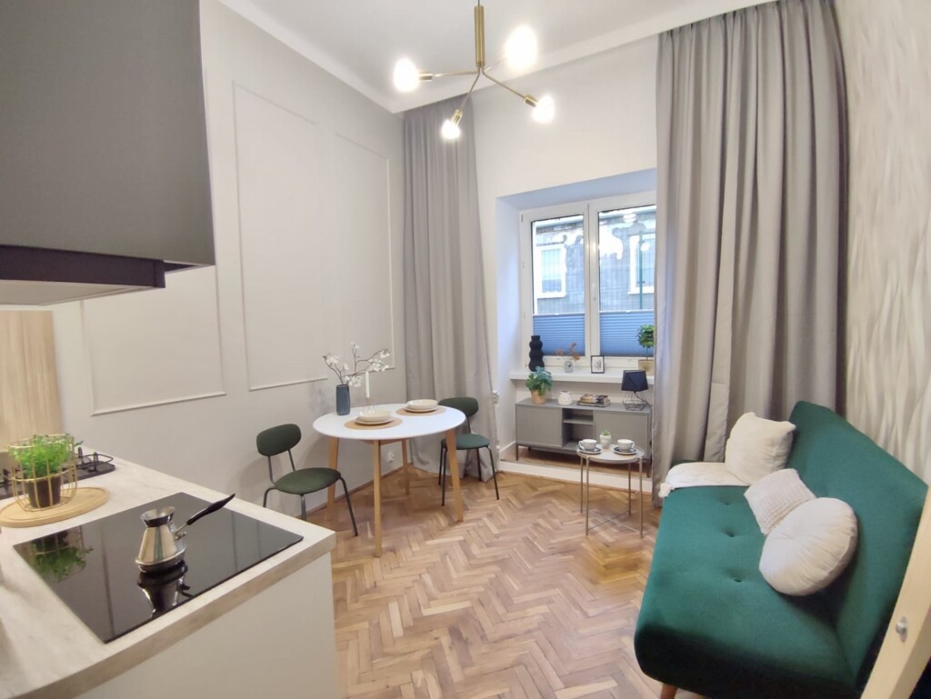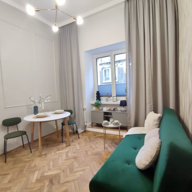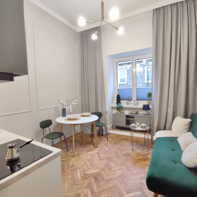 Located in the heart of Warsaw, just 50m from METRO Plocka station, this quiet studio apartment is perfect for one person. The studio is fully furnished, and well-equipped – ready to move in.